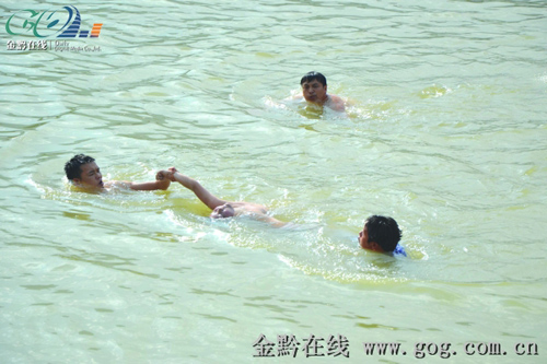 當(dāng)天下午5點10分,一名10歲大的男孩到銅仁城區(qū)錦江河開發(fā)區(qū)五顯廟碼頭處游泳,由于水流較急,小男孩被激流卷走200多米遠,岸上的兩個同伴見狀拼命呼喊“救命!”河岸錦江樓飯館的4名廚師聽到呼救聲后丟下手上的活,從屋子里跑出來跳到河里聯(lián)手施救。