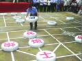 金黔在線訊 6月17日下午1點,海天園巨大的自然大棋盤上正在進行一場扣人心弦的表演賽,兩位老人手持長竹竿,坐在高高的石階上,指揮兩位員工按照自己的走棋意圖搬動著巨大的象棋子。經過三天的比賽,海天園第九屆老年象棋賽進入收官階段,按年齡分組的三組參賽選手將最后決出冠亞軍。