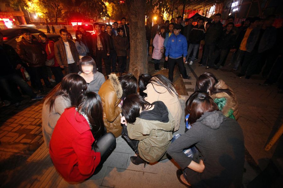 1月7日,南寧市興寧公安分局展開打擊色情交易行動。行動共抓獲14名“站街女”,經查發現清一色全是男兒身。