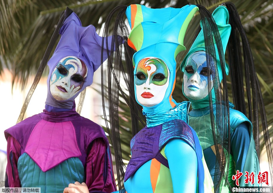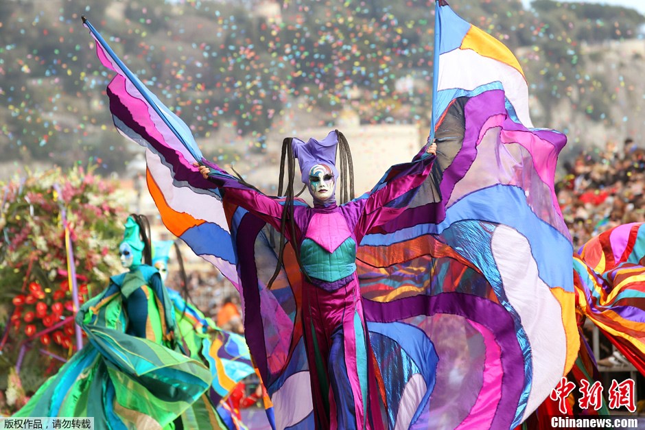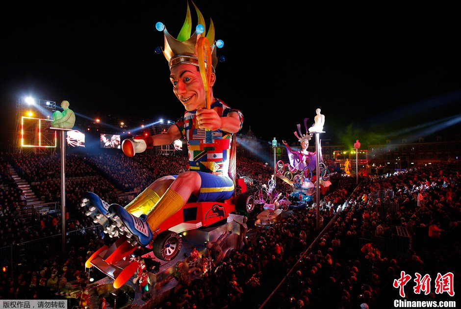 近日,2012年法國尼斯狂歡節盛大舉行。據悉,為配合今年舉辦的倫敦奧運,第128屆尼斯狂歡節主題為“運動之王”。狂歡將從2月17日持續至3月4日。圖為女子盛裝參加狂歡游行。