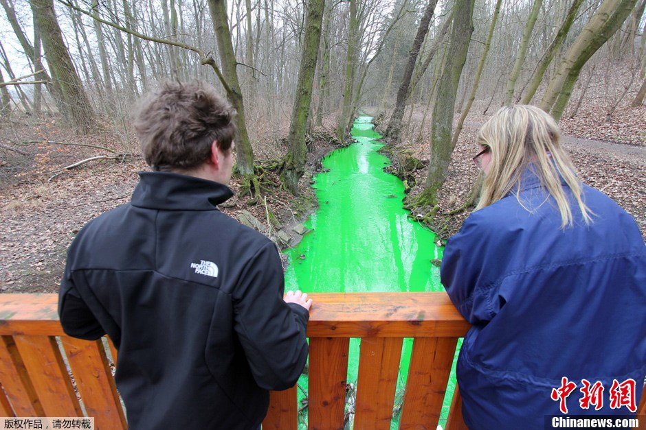 3月2日,在德國中部下薩克森州的哥廷根,有兩條相鄰的小溪,但其顏色卻截然不同。一條是普通的小溪,另一條卻因為化學污染變成綠色的溪流。據(jù)悉,這條綠色的小溪是由于附近的一個工廠在遭遇火災后,工廠內(nèi)的化學物質(zhì)流入小溪而致。