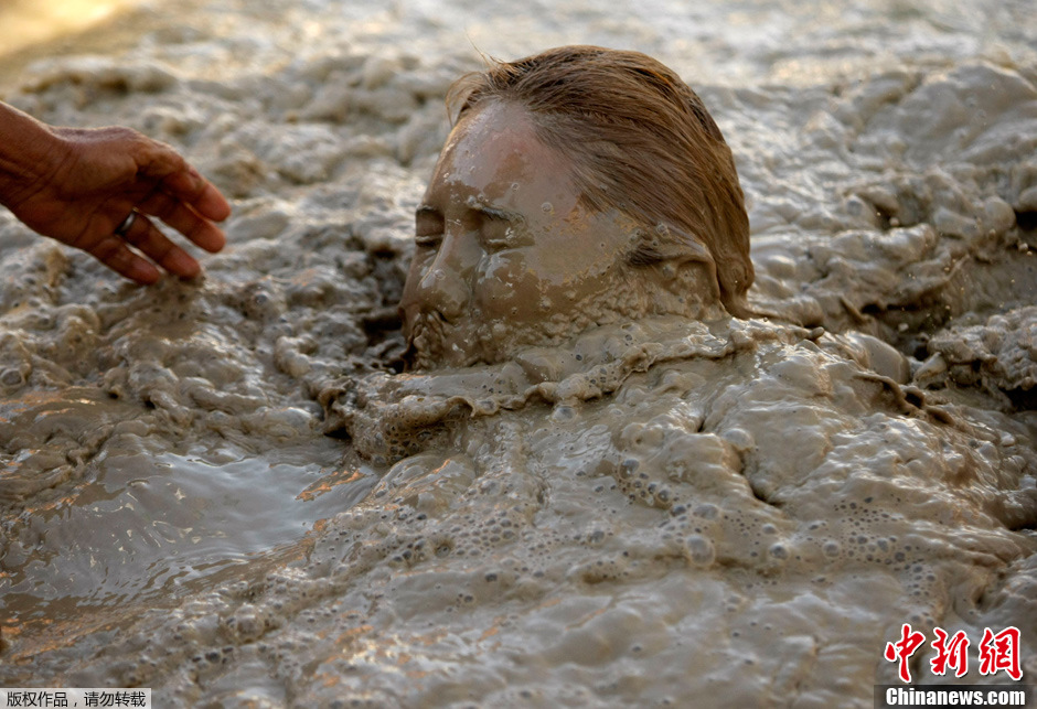 當?shù)貢r間3月19日,在墨西哥新萊昂州蒙特雷El Espinazo村,當?shù)匦磐綄⒆约航谀嗨邢丛�,希望治療身體的疾病。
