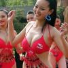 5月4日,參加2012國際旅游小姐中國區總決賽的54位佳麗在湖北赤壁旅游溫泉景區上演比基尼秀,進行大賽比基尼單項賽評選。