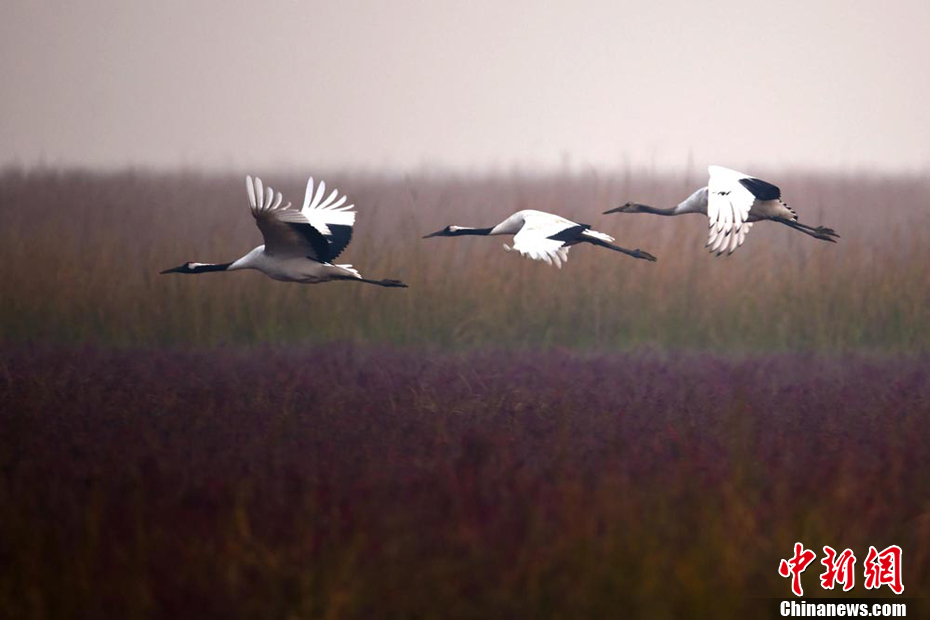 江蘇黃海灘涂丹頂鶴舞蹁躚