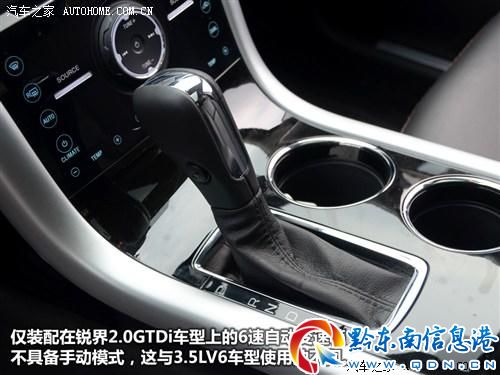 銳界2.0GTDi的外觀、內(nèi)飾等方面與3.5L車型差別不大。變化的重點(diǎn)是搭載了福特EcoBoost2.0GTDi發(fā)動(dòng)機(jī),這款發(fā)動(dòng)機(jī)動(dòng)力數(shù)據(jù)與蒙迪歐-致勝GTDi240車型相同。最大輸出功率為240馬力,峰值扭矩可達(dá)345N·m。值得注意的是,銳界2.0GTDi是一款前驅(qū)車型,而3.5L車型均為四驅(qū)車型。
