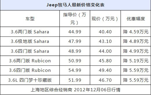 從上海地區某綜合經銷商處了解到,Jeep牧馬人在該店最高可優惠5.29萬元,購車送大額裝潢,有意向的客戶可撥打電話詳細咨詢。