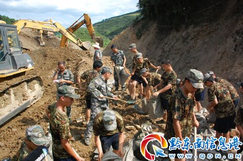 黔東南州、岑鞏縣兩級領導在一線研究策略指揮作戰 翁錫山攝