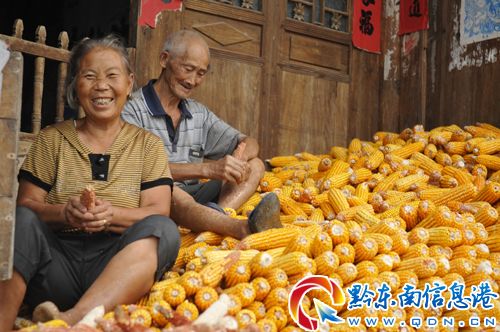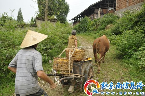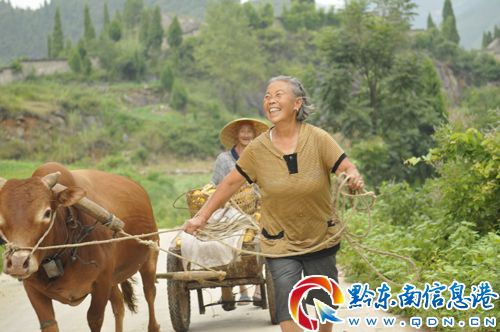 近日,岑鞏縣糧食增產工程玉米測產順利通過黔東南州專家組的驗收,最終加權平均理論產量為648.9公斤/畝,比原計劃指標(600公斤/畝)超8.15%。該縣通過創新11項農業技術使近9萬畝糧食實現增產。圖為水尾鎮白水村流洞組村民黃仕軍老人與妻子用牛車來回搬運玉米的情景。(楊元彬)
