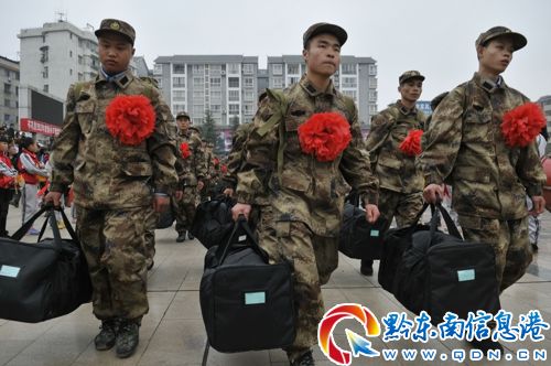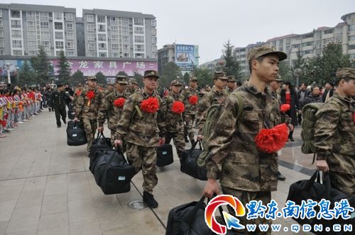 “向前,向前,向前,我們的隊伍向太陽,腳踏著祖國的大地,背負著民族的希望……”12月11日下午3時30分,伴隨著雄壯的中國人民解放軍軍歌的旋律,60名岑鞏籍新兵英姿颯爽,身穿迷彩服、胸前別著大紅花,每人手里拎著一個軍用行李袋,背著疊得棱角分明的軍用被子,離開家鄉(xiāng)奔赴軍營。
