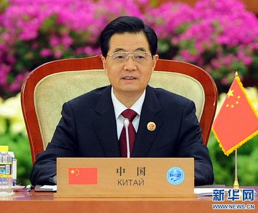 7日上午,胡錦濤在上海合作組織成員國元首理事會第十二次會議大范圍會談上發表《維護持久和平 促進共同繁榮》的講話。