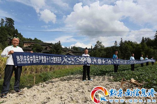 在黨的十八大即將召開之際,為了表達苗家兒女喜迎盛會的心情,在貴州省丹寨縣排調鎮遠景村,7名苗族村民花了近兩個月的時間,繪制了一幅長十八米,畫面內容以十八組不同苗族傳統圖案組成的蠟染長卷,以苗族人民特有的方式獻禮即將召開的中國共產黨第十八次全國代表大會。