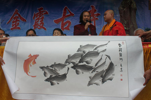 著名工筆畫家盧福堂向寺院捐贈作品
