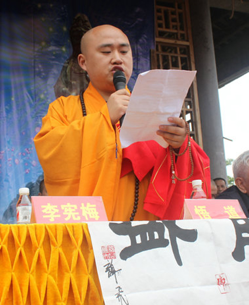 湖南常德金霞古寺主持悟道法師發表講話