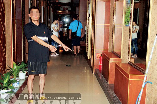 犯罪嫌疑人韋某指認血案發生的KTV門前現場。