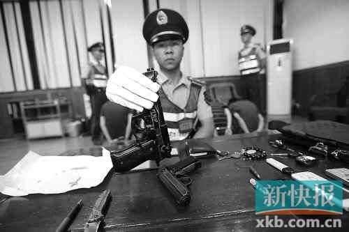 執勤戰士展示繳獲的仿真手槍