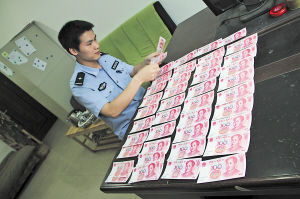 “昨天,我一個朋友打來電話,說要‘20斤’貨,我就問誰要,在哪里交易,他告訴我說是外地一個很有錢的老板要,在汽車西站附近一大酒店交易。”聶某交代,他們稱1萬元假鈔為“1斤”貨,“20斤”貨就是20萬元假鈔。經過幾次電話聯系,他們最終約定,每1萬元假鈔售價為800元人民幣。就在聶某將“20斤”貨帶到房間時,辦案民警突然就沖了進來。