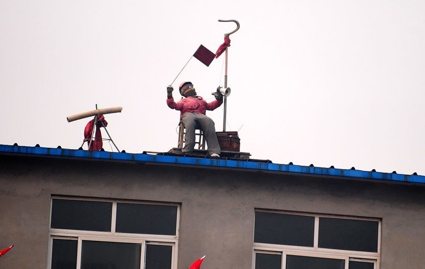 抗議拆遷 樓房上的假人