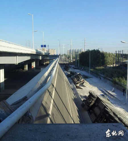 哈爾濱1座大橋引橋斷裂4輛貨車墜落已致2人死