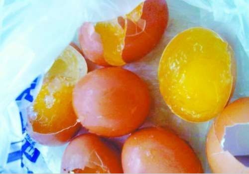 回到家后,田女士把新買的雞蛋煮了幾個,吃到嘴里后,卻覺得味道有些不對。“感覺像是橡皮筋一樣,怎么嚼都嚼不爛。”于是她又拿了幾個來,磕開后,發現“蛋黃”里有不明凝結物,呈塊狀,而且蛋黃顏色通體淡紅,聞起來沒有雞蛋的腥味。