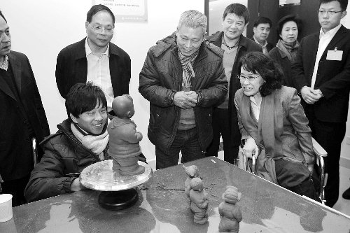 12月22日下午4點,張海迪和第五屆主席團會議代表一行來到河南省殘疾人綜合服務中心參觀。他們和前來求職的殘疾人朋友不期而遇。