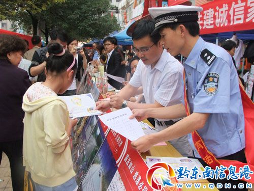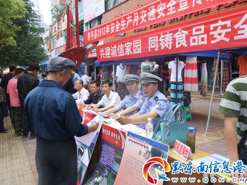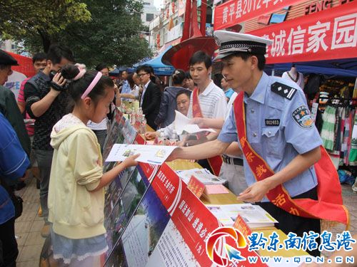 6月份以來(lái),黃平縣交警大隊(duì)組織宣傳民警在汽車站、鬧市區(qū),或深入轄區(qū)重點(diǎn)公路沿線村寨、企業(yè)、學(xué)校等開(kāi)展“安全生產(chǎn)月”宣傳活動(dòng),通過(guò)設(shè)立交通安全咨詢臺(tái),通過(guò)懸掛標(biāo)語(yǔ)橫幅、擺放宣傳展板、發(fā)放宣傳資料、接受群眾咨詢,為群眾講解交通安全法律法規(guī)及出行常識(shí)等形式,營(yíng)造了濃厚的交通安全宣傳氛圍。(唐光新 王海/攝)
