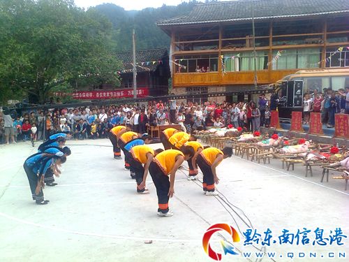 2012“七月半”侗族民俗文化節(jié)由磻溪鄉(xiāng)政府主辦,洞腳村兩委承辦。節(jié)日期間,舉行祭祖、游泳、玩山對歌、侗家婚俗表演、踩犁板、過火海等活動。