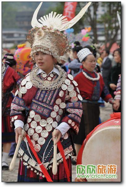 漂亮小鼓手,頭上戴的牛角翅很長,一抖一抖的閃著金屬的光澤,很吸引眾人的眼球。