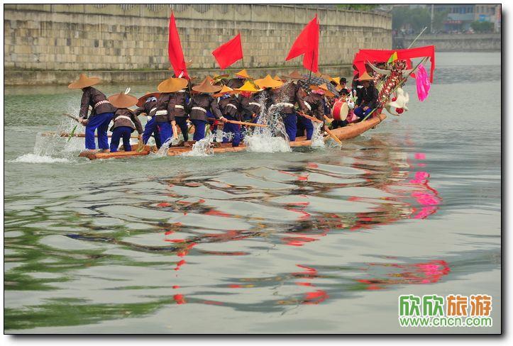 出發的龍舟,槳手劃得并不十分賣力,說是比賽,不如說是在表演。