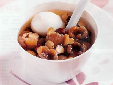 龍眼肉50克,雞蛋1個,先煎龍眼,30分鐘后打入雞蛋,共燉至熟,早晚各1次,連服10天。