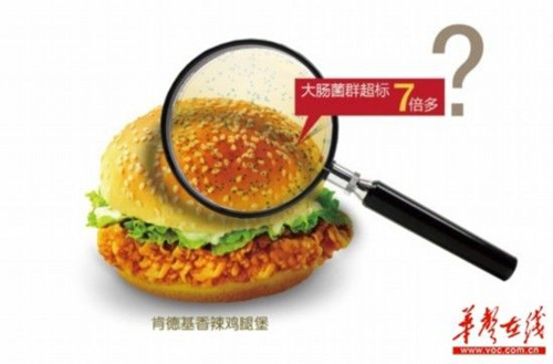戲劇性的一幕發生了,肯德基自己的食安部門提出異議,認為檢測漢堡的標準不對,漢堡不是面包,不能以面包糕點的標準來衡量,要求衛生局重新考量。經過衡量和匯報,長沙市衛生局臨時撤銷了不合格名單。從中也發現,對于洋快餐的漢堡等的安全性,國家居然沒有技術層面的檢測標準。