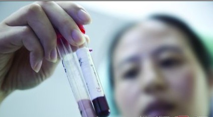 2010年8月5日,長沙某醫院,乳糜血(左)與正常血的對比。