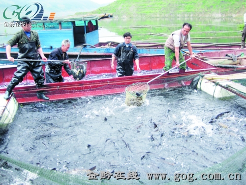 大水面攔網(wǎng)養(yǎng)殖法。庫(kù)汊攔網(wǎng)養(yǎng)魚現(xiàn)有18處,養(yǎng)殖總面積10500余畝,平均產(chǎn)量達(dá)50公斤/畝,年產(chǎn)商品魚500余噸,年產(chǎn)值500余萬元。庫(kù)區(qū)的主要養(yǎng)殖品種鳙魚都基本上是外調(diào),主要銷往懷化、貴陽、重慶、成都等地,成魚銷售價(jià)格(庫(kù)邊批發(fā)價(jià))隨季節(jié)變化在8-12元/公斤不等,其中冬季魚價(jià)最低,初夏季最高,2011年外銷商品鳙魚達(dá)1600余噸。