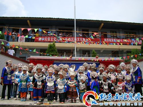 黃門九年制民族學校是錦屏九寨侗歌鄉鎮的一所中小學為一體的學校,近年來,為繼承和發揚純樸的北侗“歌簦”民族文化遺產,開拓鄉土味濃郁的民族文化旅游業,學校結合鄉、校、村情把侗歌“歌簦”文化遺產引進中小學課堂,利用鄉土教材課本和課外活動時間進行授課、通過課間休息充分利用廣播播放侗歌、編寫侗語校歌讓學生傳承學唱、培養侗族民歌新人、重大民族節日開展侗歌擂臺賽。把山歌的各種唱法借助節日這一活動載體表現得淋漓盡致,激發廣大學生人人學侗歌、人人愛侗歌、人人會侗歌的良好氛圍,達到傳承民族歌簦文化的真正目的。圖為北侗黃門民族學校和黃門村日前在聯合舉辦侗歌擂臺賽。(石福濤 攝)