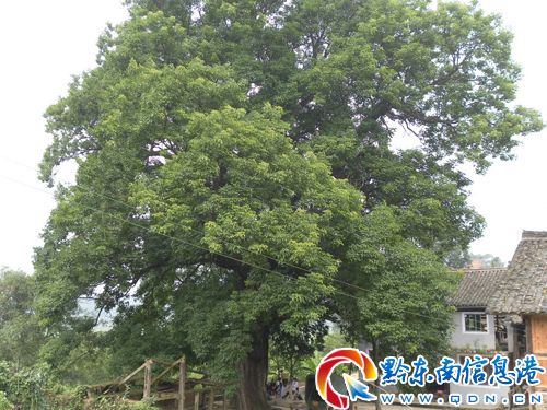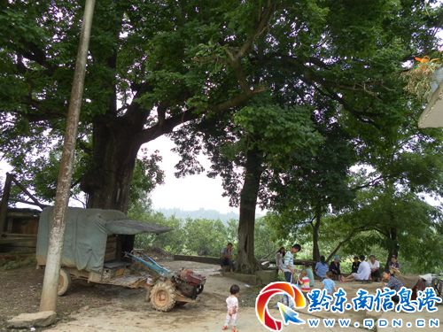 錦屏縣新化鄉新化所村北門口有一顆100多年的古樹,樹枝伸出范圍的直徑大約有40米,樹干直徑大約1.8米,樹高25米左右,是村民夏天和秋天農閑時最理想的休息場所,當地村民稱此樹為“護寨古樹”。(李必祥)