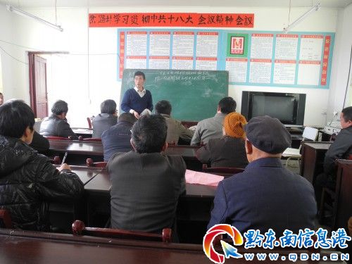 銅鼓鎮為使十八大精神深入人心,積極召開黨委擴大會議,組織廣大黨員學習十八大精神,各村黨支部也相繼組織黨員群眾一同學習黨的十八大內容,及時把黨的聲音傳到各村各寨各戶。