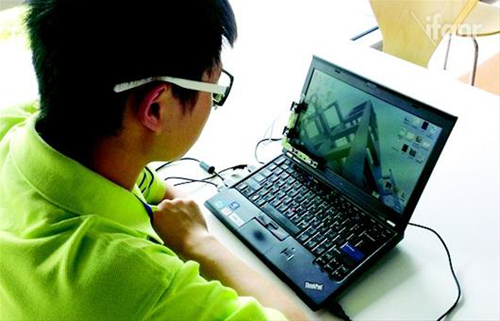 楊碩介紹:“目前的系統是接觸式,主要依靠戴眼鏡完成操作。我們想做成非接觸式系統,就是不穿戴任何設備,就能很自由地使用眼神操作電腦。”目前的眼鏡起支架作用,沒有鏡片不會對視力造成傷害,以后會脫離鏡框,而變成火柴盒大小的儀器擺放在電腦旁邊,通過發射低功率紅外光完成眼神操控,今后如果量產,市場價格大約在1200元左右。