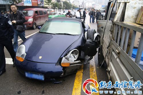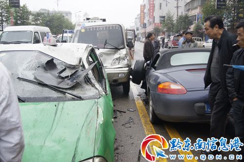保時捷連撞六車未停 輪胎“生氣”跑到車門上(組圖)