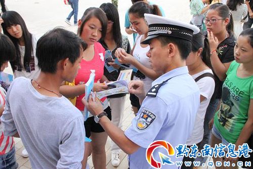 為進(jìn)一步加強(qiáng)對廣大師生的道路交通安全教育,全面提高在校師生們的交通安全意識和自我防護(hù)能力,有效預(yù)防和減少校園道路交通事故。9月8日上午,凱里市公安局交警大隊(duì)結(jié)合轄區(qū)實(shí)際,組織宣傳民警深入黔東南州職業(yè)學(xué)院開展“開學(xué)第一課”交通安全知識教育活動。