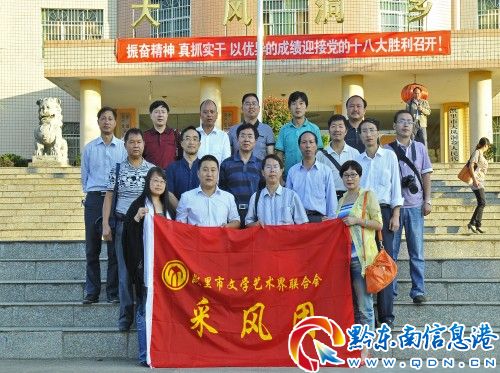 在采風過程中,文藝家們興致很高,有詩人現場作詩,我州知名書法家楊光融、潘興金、周忠良等即興創作了多幅書畫作品。大風洞鄉黨委政府負責人與文藝家們進行了座談,并共進晚宴。(莫屈/文 陳沛亮/圖)