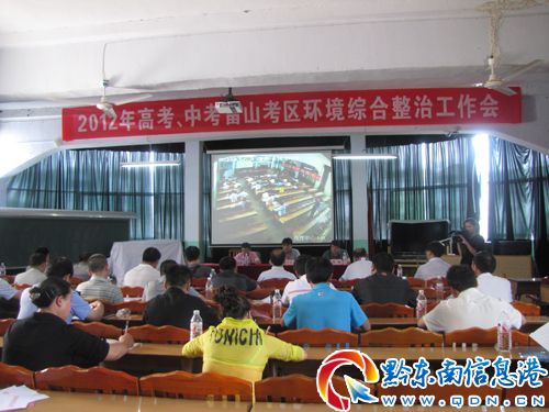 為營造“平安考試”良好環境,切實維護考生利益,一務實作風和良好佳績向黨的十八大獻禮,5月28日下午,雷山縣2012年高考、中考雷山考區考試環境綜合治理工作會在雷山民族中學考點高考視頻監控中心舉行。雷山縣人民政府副縣長葉建文主持會議,雷山縣招考委員會全體委員、縣2012年國家統一考試領導小組、考試環境綜治工作領導小組、縣考試安全應急處置協調領導小組、考試安全保密工作領導小組全體成員、縣應急、教科、監察、保密、公安、交通運輸、疾控、供電、招考中心、電信、移動、聯通、衛生、食監、藥監、住房與城建、文體廣電、市政、環保、交警、工商、氣象、供水、雷中、二中、三中等涉考單位主要領導參加了會議。