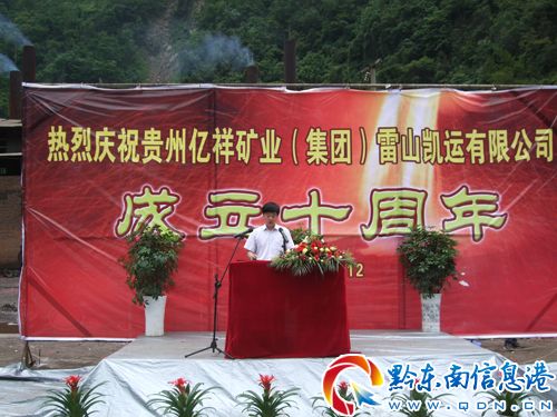2012年5月30日,雷山縣重點(diǎn)規(guī)上企業(yè)貴州億祥礦業(yè)(集團(tuán))雷山凱運(yùn)有限公司在望豐鄉(xiāng)豐塘工業(yè)園區(qū)隆重舉行成立“十周年慶典”活動(dòng)。中共雷山縣委副書記、縣長袁剛,縣政協(xié)副主席李玉文出席,并分別致辭和講話。