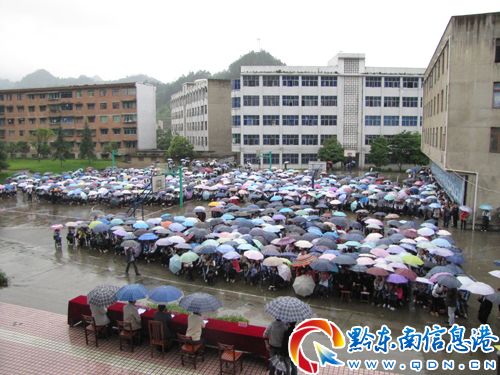 6月4日上午,雷山民族中學全校師生冒著蕭蕭夏雨,聚集學校水泥籃球場,隆重舉行2012屆高三畢業典禮大會。大會由學校黨組副書記羅永賽主持。