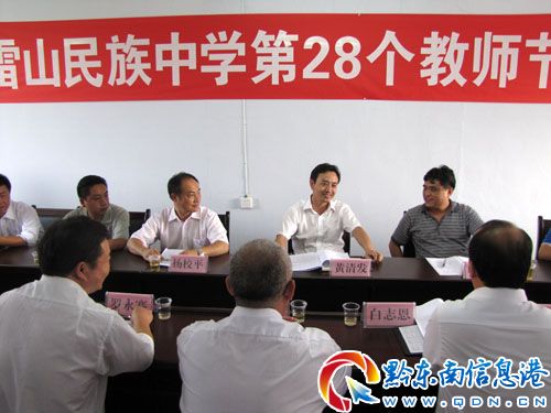 在雷山民族中學第28個教師節座談會上,黃清發書記認真聽取了白志恩校長的學校工作匯報,對雷中近幾年來的辦學成績表示肯定,并指出要辦好一所學校,需要一位優秀的校長、一隊優秀的教師隊伍、一個優良的辦學環境;解決雷山存在的困難和雷山經濟社會各項事業的發展都離不開各行各業的人才,希望雷中師生肩負起縣委縣政府的重托和雷山人民的期望,發揚艱苦奮斗的作風,為推動雷中乃至雷山教育事業的發展做出更新更大的貢獻。隨后,黃清發書記向學校遞送了“教師節”節日慰問金,表達了縣委縣政府對雷中教職工的親切關心,并與廣大教職工就學校發展、60周年校慶籌備進行了親切交談。(雷山民族中學 余國德)
