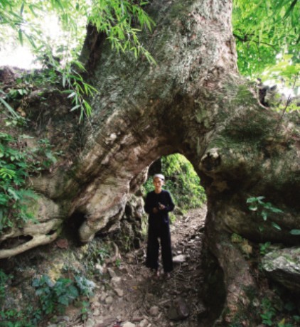 我問寨上的老人:“是先有寨子,還是先有古樹?”老人說:“是先有古樹,后有寨子。古時候先輩們遷到這里,看這棵大樹長得好看,又有現成的樹洞,方向也好,相信它能保佑苗家,就把這樹洞當成寨門了!”由此看來,是古代苗族的生態觀念支配,才促使人們作出了這稱道千古的聰明選擇。
