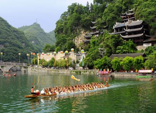 日期:2012年6月23日地點:鎮遠城關項目:傳統龍舟男、女500米競速看點:觀看舞陽河龍舟比賽,看千橈連動,龍舟競發,沿河兩岸歡呼聲響徹石屏山麓。欣賞龍舞、踩蓮船、蚌殼舞、苗族踩鼓舞、侗族苗族蘆笙舞等表演,氣氛熱鬧非凡。參觀六百多年歷史的古井、“歪門邪道”古巷子,感悟古典的光芒。漫步學堂會館寺廟道觀于一體的青龍洞古建筑群,了解博大精深的宗教文化,和諧社會的完美理念。觀賞歌舞演出《古韻鎮遠》,一場盛世歌舞演繹鎮遠四千年歷史,從開疆成為苗族之鄉,軍事重鎮,商貿鎖鑰到如今的山水小鎮。領悟古鎮博大厚重的文化。乘豪華仿古的畫舫夜景古城水上游,免費品味生態鎮遠茶,欣賞如詩如畫的美麗鎮遠夜景。