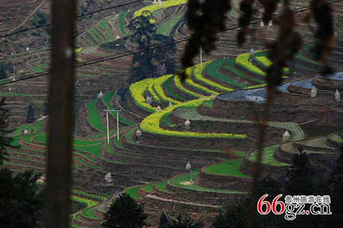 加鳩座落在黔東南苗族侗族自治州南部的從江縣境內,地處月亮山腹地,是一個以苗族為主體民族的民族鄉。由于加鳩地處月亮山腹地,因此這里山高谷深、森林茂密、流水淙淙而終年云霧繚繞,,寒氣習習,是一個神奇之地!加鳩的一大特色是梯田多,常從山腳延伸到山頂,仿佛一級級天梯,而苗族就居住在山腰上。就加鳩梯田來說其主要是分布在穿越該鄉的從(江)荔(波)旅游路沿線上,特別又以玉民村、高臺村、加水村、加能村、加鳩村和擺少村的梯田最為美麗和壯觀。她是苗族人民世世代代留下來的杰作。苗族是一個“稻飯魚羹”的民族,苗族的稻田都是依山而開,隨山勢地形的變化而變化,因地制宜,山坡海拔的高低,坡度的平緩及山坡的大小決定了梯田的大小和形狀。加鳩獨特的地型地貌決定了這里的梯田面積最大不過一畝,大多數田都是只能種一二行水稻的“帶子丘”和“青蛙一跳三塊田”的碎田塊,最小者僅有簸箕大,往往一坡就有成百上千塊。這里的梯田最長的可達二、三百米,最短的不足一米。長達幾百米一丘的梯田其各段的大小形狀都完全不同。加鳩梯田不僅規模宏大,氣勢磅礴,而且線條優美。無論從線條,還是整體形狀來看,加鳩梯田都吸取了天下梯田之精華,它比元陽梯田更加秀美,比龍勝梯田更加壯觀,極具魅力。特別是那居于梯田間的村寨或牛棚與梯田環境招相輝映,與大自然融為一體,無不體現出自古以來苗族就與大自然和諧相處的和諧之美,給人一種“人間仙鏡,世外桃園”的感覺。凡到過加鳩苗鄉的人,都無不為梯田的秀麗景色有所感嘆。