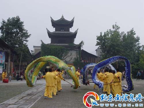 龍年的中秋國慶,特別是隆里古城生態博物館的免費開放,使這座600余年的明代軍事城堡更加充滿生機活力,吸引更多的中外游客紛至沓來,古城人民為不斷豐富國慶節的歡樂氛圍。隆里古城民間說唱組自發組建了由民間文藝骨干組成的說唱組,采用小品、廣場舞、老中青腰鼓隊、唱漢戲、舞龍、迎故事、民間小調、表演唱等群眾喜聞樂見的說唱形式展現隆里古城獨特的民族民間文化,深受古城人民和中外游客的普遍喜歡。圖為隆里古城舞龍隊在東門給來自法國的旅游團隊表演后留影紀念。(石福濤)