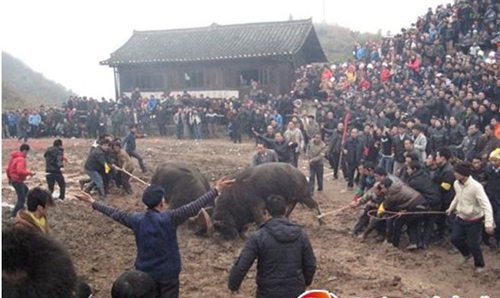斗�;顒佑欣诠膭畲迕褡灾魑桂B耕牛,培養村民勤勞的美德。斗牛期間村民聚集,是促進民族團結、宣揚少數民族文化的健康途徑,同時也是村民交流趕集的機會,此項活動得到當地政府的大力支持。(黎化聯)