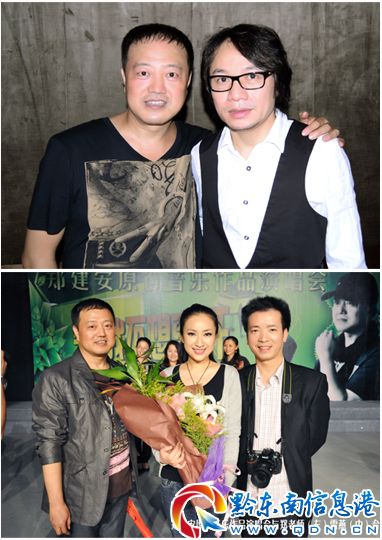與小豆老師合影(上),與歌手雷艷、王興爵合影(下)