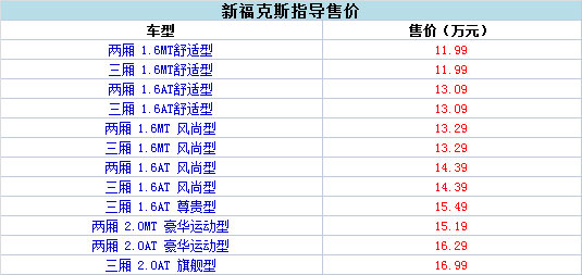 車天下汽車網訊 4月23日,新�?怂�(報價 參數 圖片 論壇)在北京車展中正式上市。新車在動力上搭載了1.6L和2.0L兩款發動機,而根據配置差異共有9款車型供消費者選擇。新�?怂沟氖袌鲋笇r為11.99-16.99萬元。